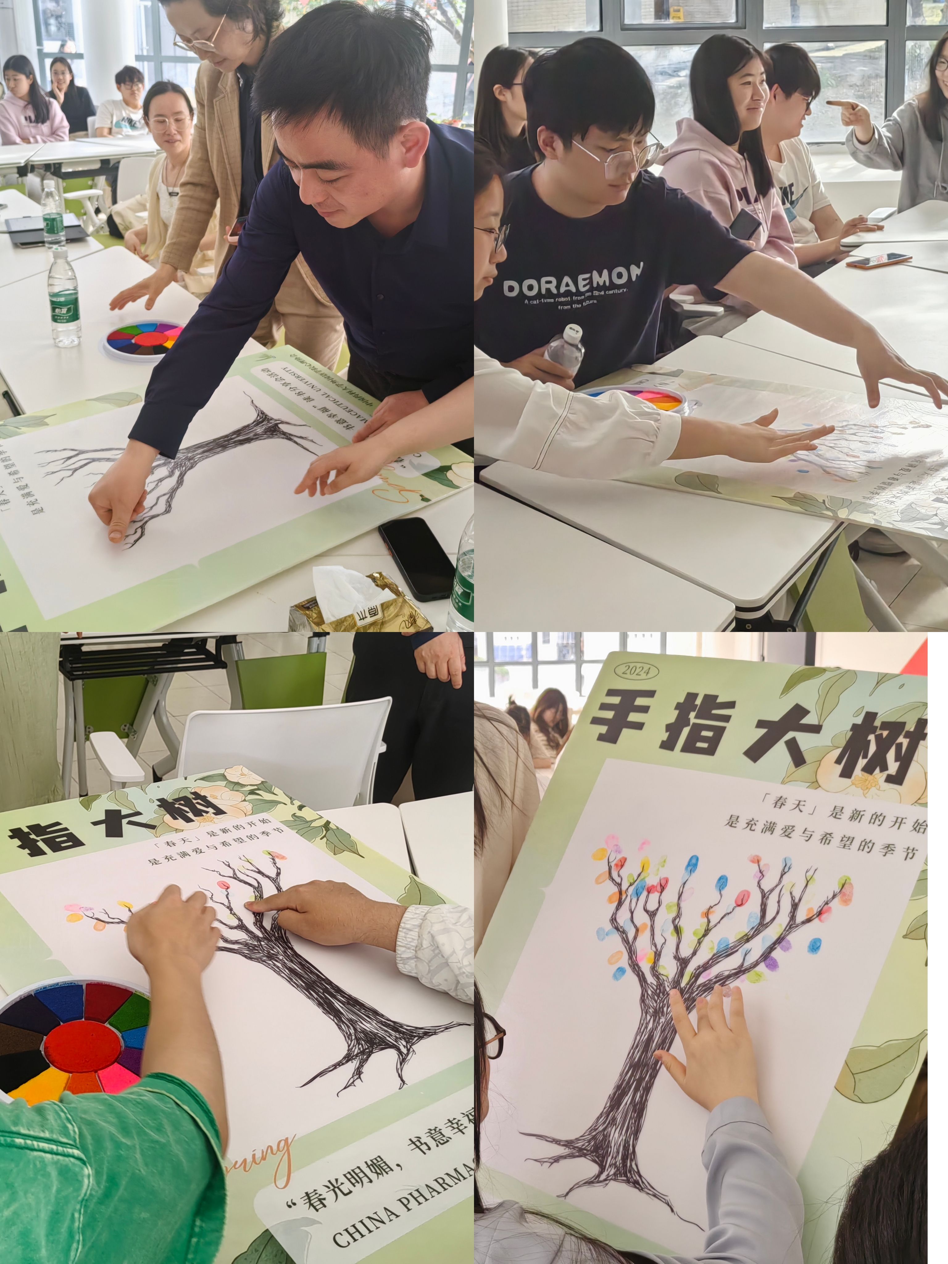 随后进行的是心理小游戏“手指大树”环节,大家纷纷拿起彩色印泥,以手指为画笔,绘成五彩缤纷的大树。现场欢声笑语、其乐融融。最后,与会师生共同合唱歌曲《平凡之路》,鼓励大家珍惜眼前生活,勇敢面对挑战,追求内心真正的自我,在平凡中成就不凡。