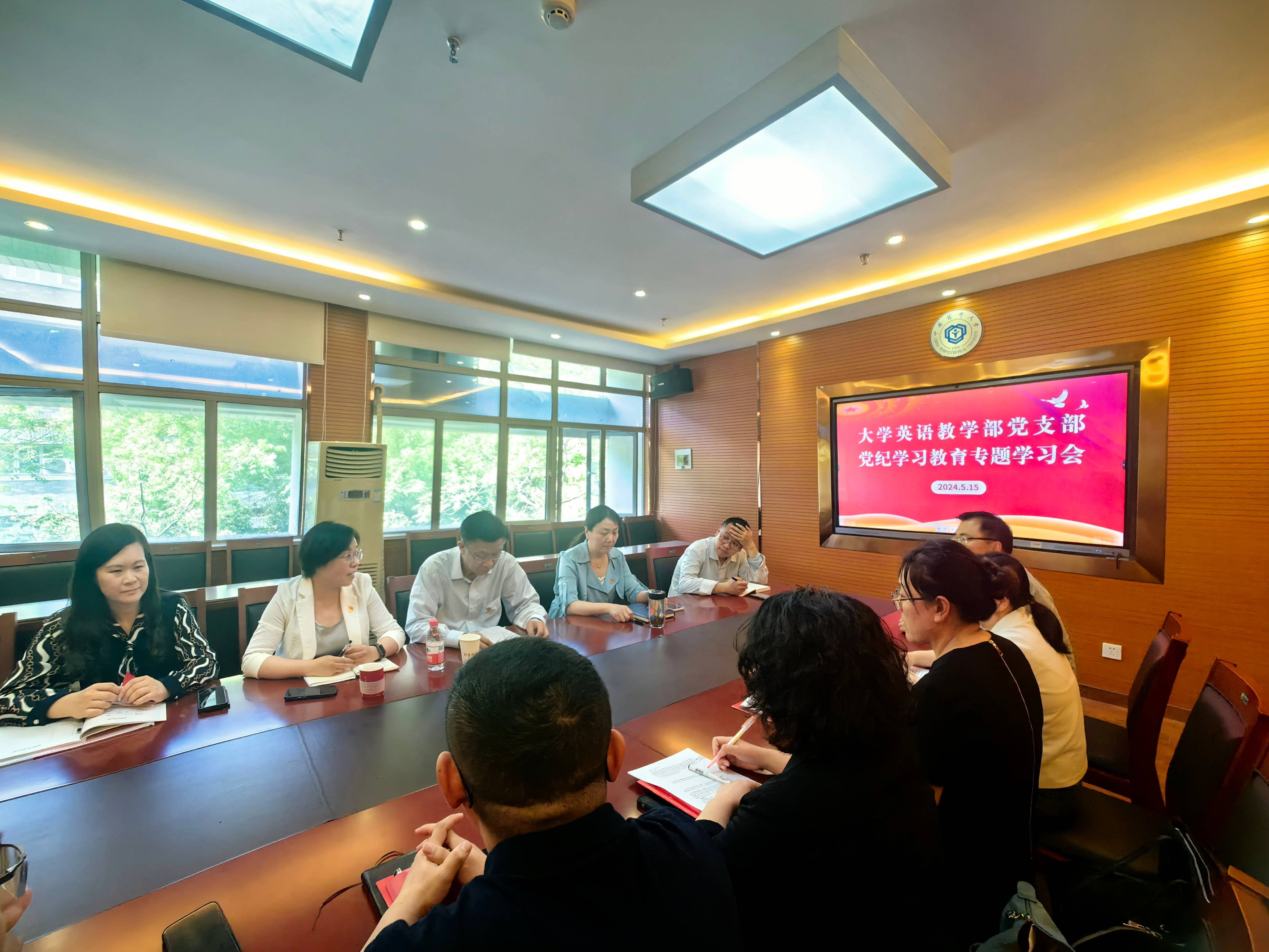 515日下午,外国语学院大学英语教学部党支部在经管文楼306召开党纪学习教育专题学习会,校党委副书记、副校长王正华出席会议,为支部教师上党课并巡学旁听支部集体学习,大学英语教学部党支部全体党员教师参加学习,学院党委书记付蕾主持会议。