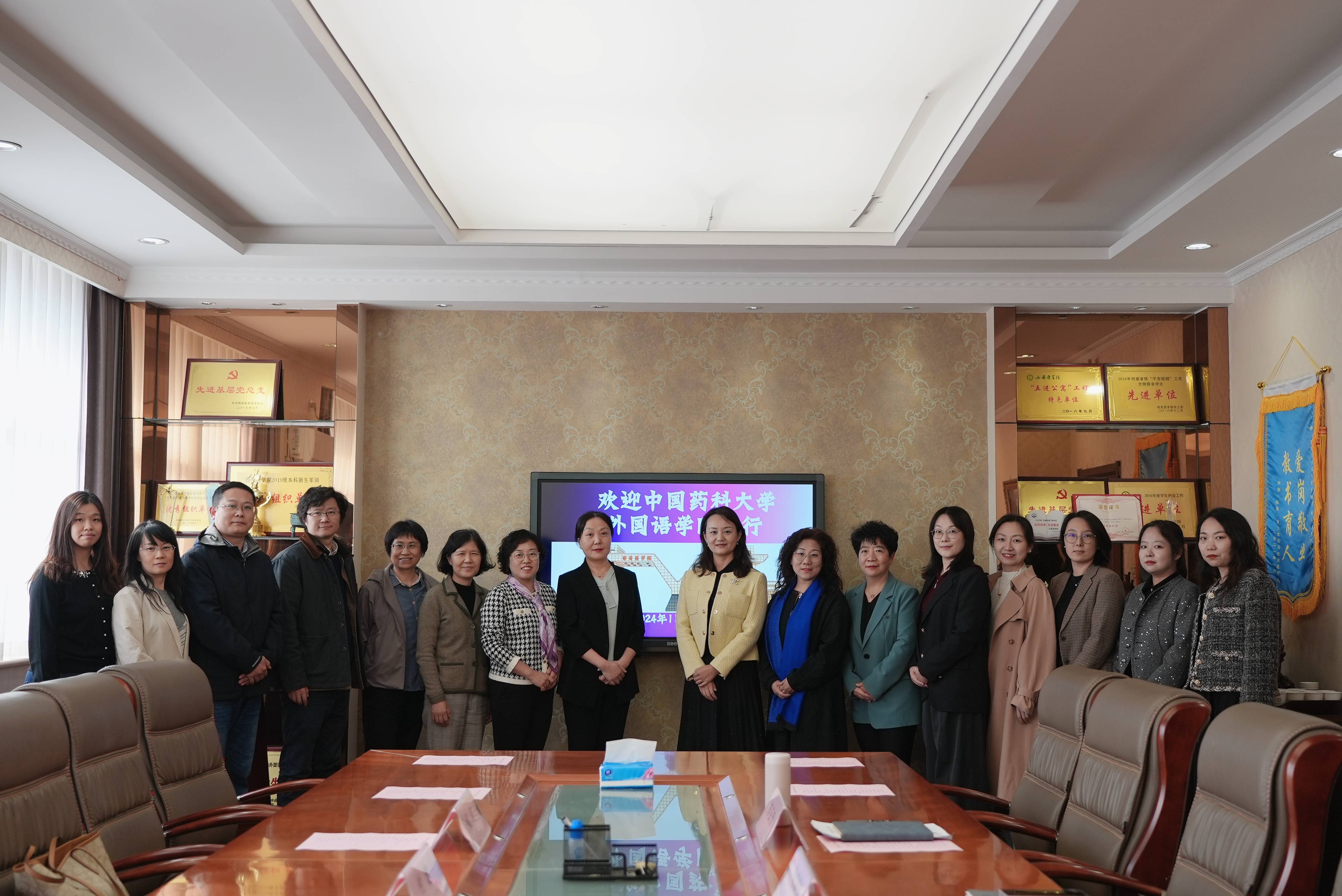 11月8日,调研组分别赴长安大学、西安医学院调研。长安大学外国语学院党委书记张永、院长冯正斌等与我校一行座谈。与会人员围绕新文科建设背景下英语专业及大学英语课程设置与教学改革展开交流,特别是在如何加强英语专业跨学科建设、提升语言类学生就业竞争力以及助力校园文化建设等方面,双方进行了广泛而深入的探讨。在西安医学院调研期间,西安医学院党委委员耿潇潇、外国语学院院长薛英利对我校一行的来访表示热烈欢迎。双方就发展转型举措、医学英语人才培养、大学英语教学改革及校园文化氛围提升等问题开展了深入探讨。此外,调研组还与我校6位校友共叙母校情谊。校友们纷纷感谢母校老师的关心与帮助,分享了各自在药大的求学和科研经历,并对母校表达了由衷的祝福与希望。