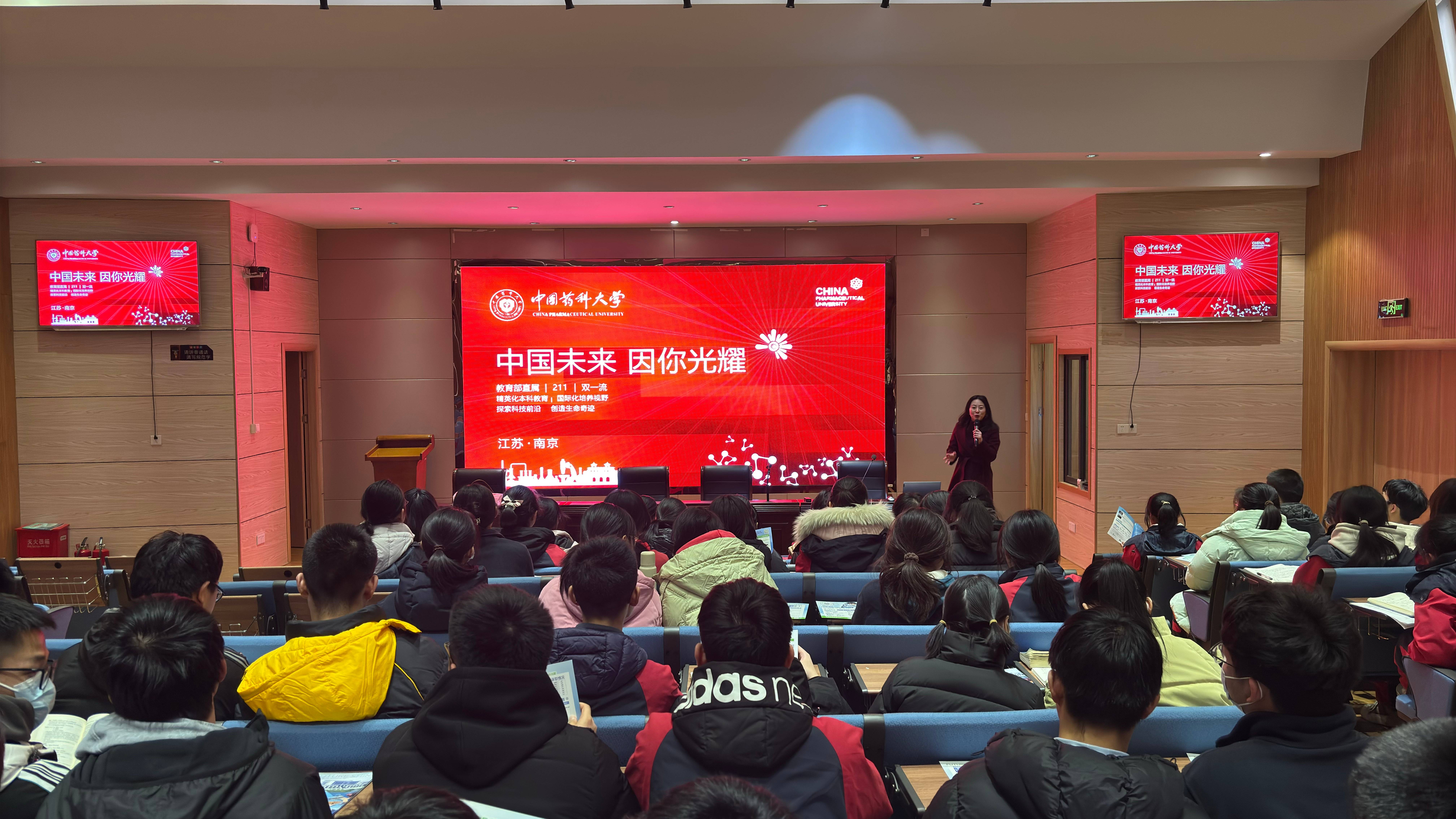 朱红副书记一行受到梅山高级中学党总支书记兼校长吕勇、副书记展勇、副校长陈正宏、教导处主任周洪庚等领导老师的热情接待。在交流座谈会上,朱红副书记从历史沿革、学科优势、科研状况、学生就业等方面介绍了我校基本情况。展勇副校长介绍了南京市梅山高级中学的基本情况,并表示希望通过共建优质生源基地进一步加深与中国药科大学的联系,充分发挥各自优势,携手共育祖国未来的栋梁之才。