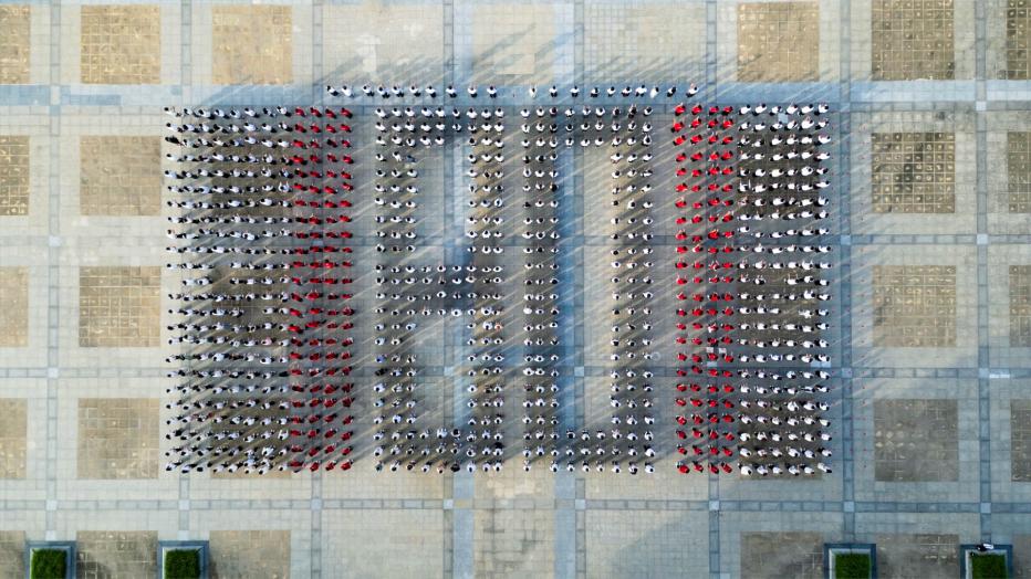现场师生拼出“80”字样