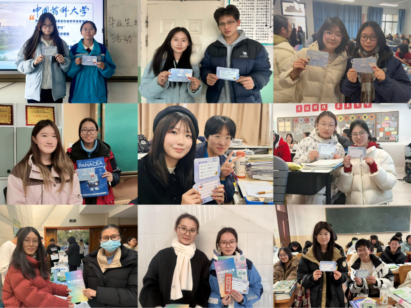 本次回访活动中,江苏各地学子率先行动,以乡音传校情、以实干践初心。南京学子依托本土优势,通过招生宣传片、日常学习、生活照生动展示药大风貌,并细致解答高中生及家长关于录取位次、专业选择等核心疑问;苏州学子走进12所中学,发放校园文创、招生手册,系统解读招生政策,并搭建线上答疑群实现长效沟通;无锡、扬州学子赴本地名校开展PPT宣讲,分享备考与志愿填报经验,以“梦想邀约卡”联结中学与药大,传递青春理想与药学情怀。
