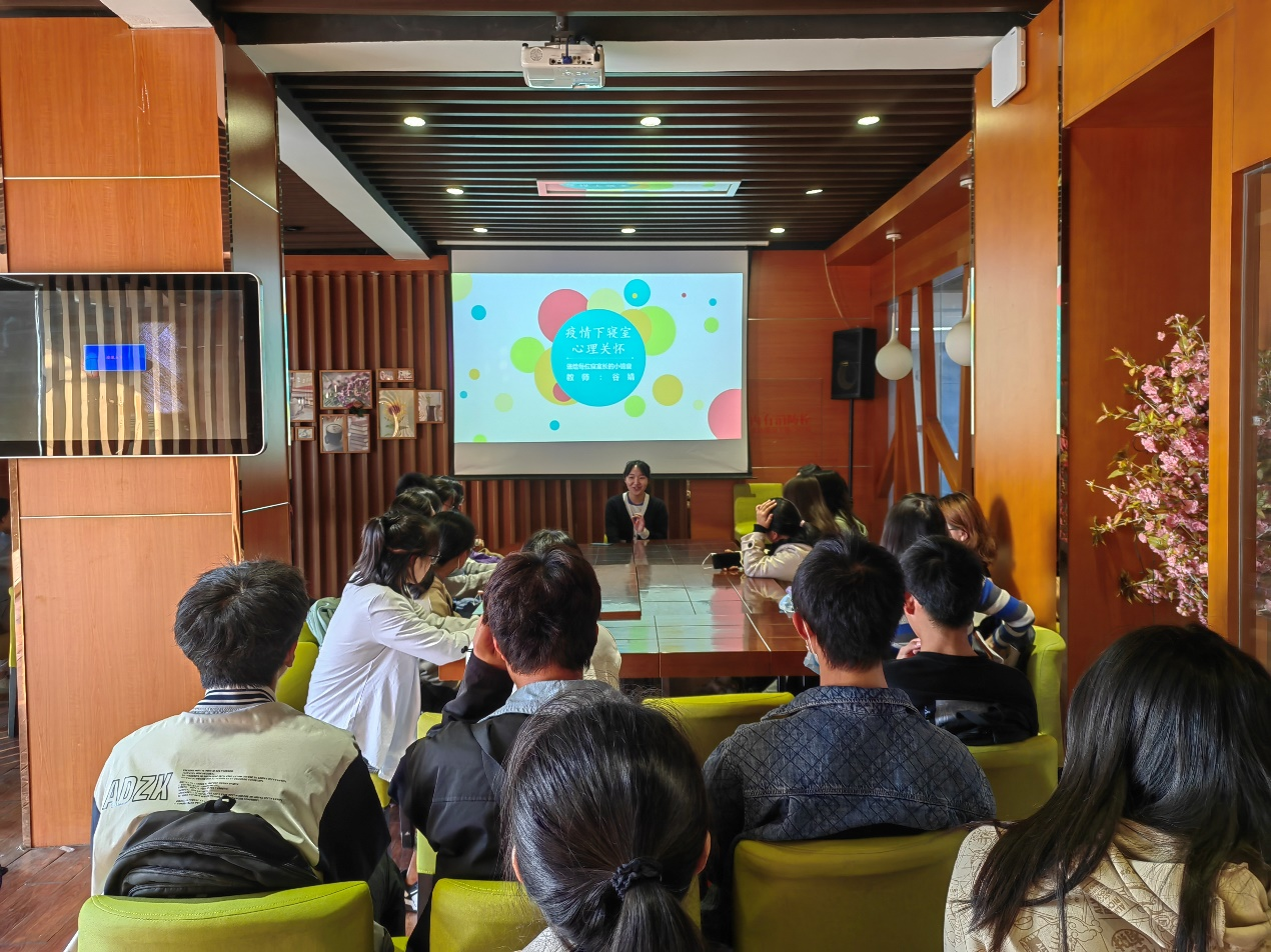 谷婧老师分别从正确认识寝室关系、寝室中常见的心理问题、寝室中应如何给与心理关怀三个方面为同学们科普了心理健康知识。培训过程中,谷婧老师通过小游戏、现场提问等方式调动同学们的热情,现场氛围轻松愉悦、积极向上。最后,谷老师希望各生活心育委员、寝室长学会观察和倾听,做好心理气象员,及时给与处于困境中的同学关心和帮助,提升善于助人的责任意识。