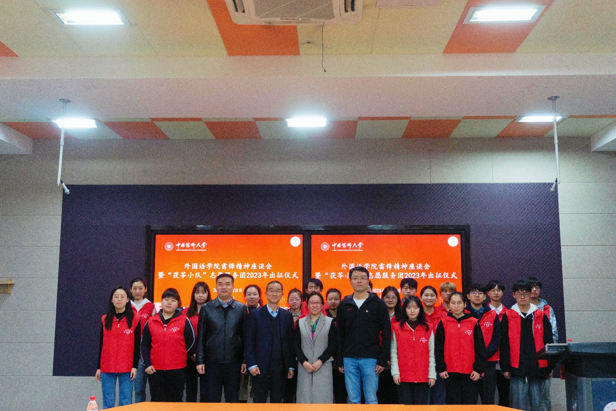 为认真学习贯彻习近平总书记关于弘扬雷锋精神的重要论述,大力弘扬奉献友爱互助进步的志愿精神,外国语学院于3月8日下午召开“弘扬雷锋精神,奉献谱写青春”主题雷锋精神座谈会暨“茯苓小队”志愿服务团2023年出征仪式。学生工作部、研究生工作部部长杜文清,校团委书记张杨彬,外国语学院党委书记付蕾,党委副书记杨波,茯苓小队队员参加本次座谈会。本次座谈会由外国语学院团委书记张乔源主持。