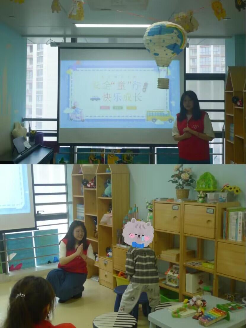 暖场后,志愿者们以 “4·15全民国家安全教育日为切口,通过生动有趣的小故事为小朋友们科普了交通安全知识,让他们认识交通标志,熟悉紧急求助电话,帮助小朋友们知安全,懂安全,用安全。随后,志愿者们一对一陪伴小朋友们阅读中英绘本。志愿者们绘声绘色的讲述将小朋友们带入了奇妙的童话世界,现场一片欢声笑语。中英绘本阅读不仅发挥了外院学子的英语专业特长,也有利于激发小朋友们对阅读的兴趣与好奇心,助力他们培养阅读习惯。
