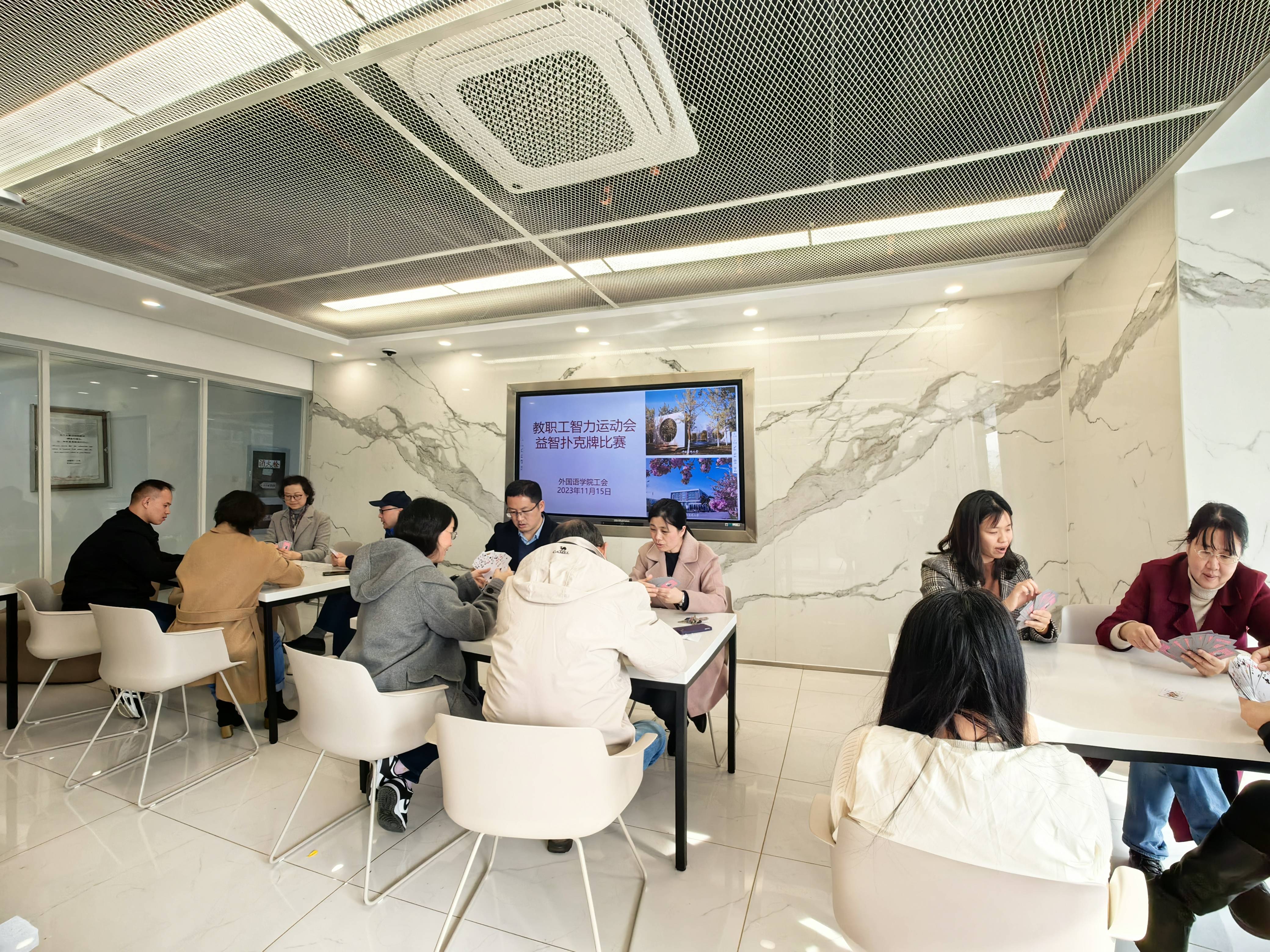 为了加强学院教职工之间的交流联系,丰富和活跃教职工业余文化生活,11月15日下午,外国语学院在经管文楼英语角举办了一场教职工智力运动会。