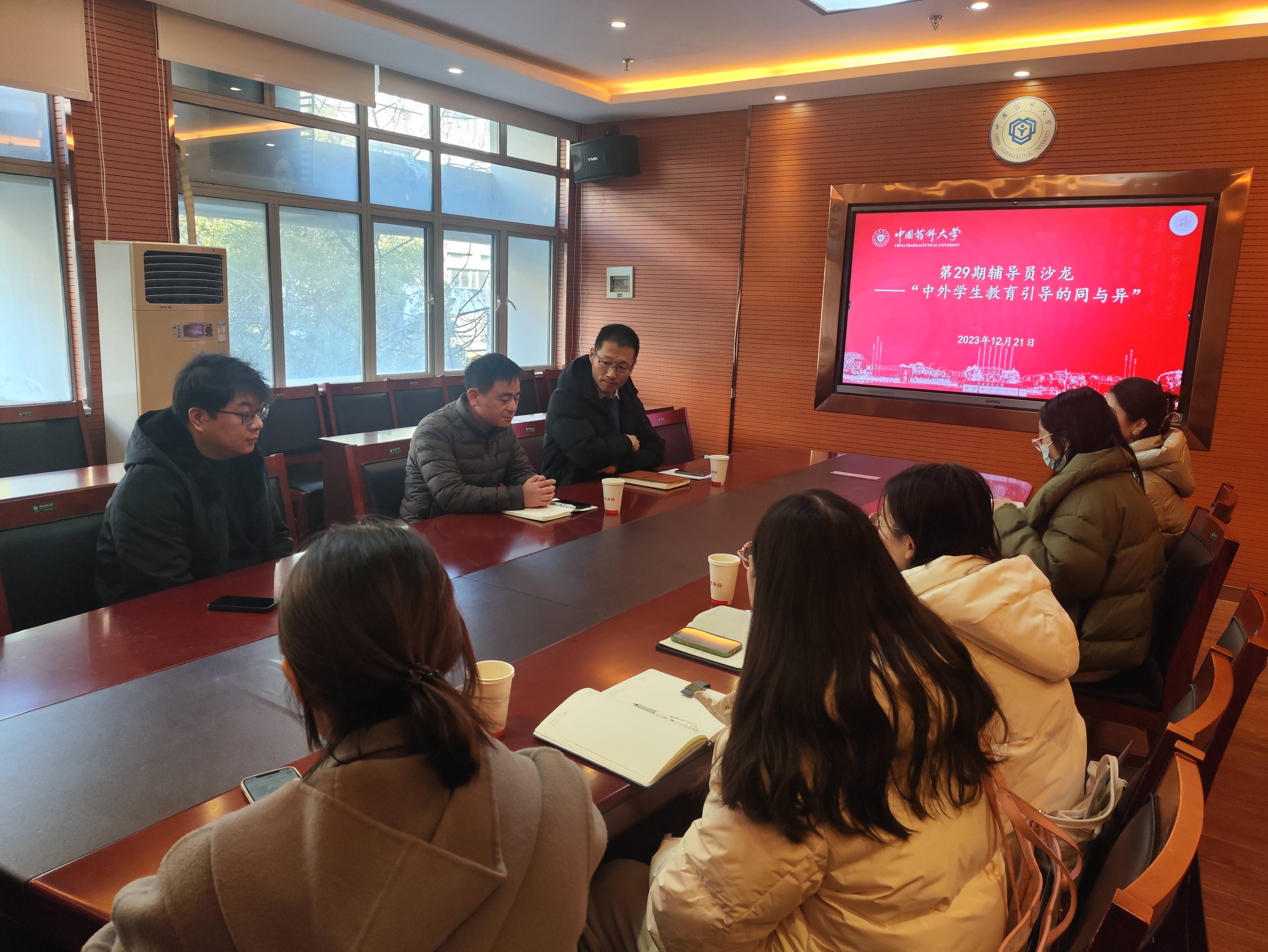 12月21日,我校在江宁校区经管文楼306会议室举办第二十九期辅导员沙龙。学工部(处)副部(处)长卢献锁,外国语学院党委副书记朱志龙、国际教育学院副院长潘荣杰,以及来自药学院、生命科学与技术学院、外国语学院、国际教育学院的辅导员参与活动。活动由朱志龙副书记主持。